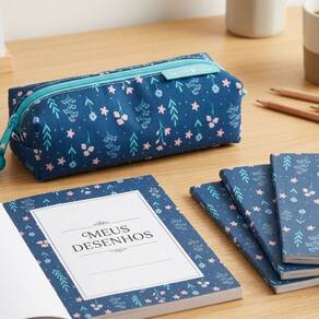 Com um design encantador em fundo azul com delicadas flores, ele transforma o simples ato de organizar seus materiais em um momento prazeroso. Perfeito para quem busca praticidade no dia a dia sem abrir mão da beleza.