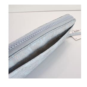 Feita em poliamida com forro reciclado, essa carteira é resistente e durável. Sua cor azul com detalhes em prata metálico confere um toque de sofisticação ao acessório. O fechamento em zíper garante segurança aos seus pertences.