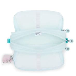 Nós adoramos como este estojo grande com zíper se abre para revelar um compartimento espaçoso. O estojo conta com 3 compartimentos principais com zíper para todos os artigos de papelaria que você precisa armazenar, além de 32 elásticos para canetas para manter seus lápis de colorir organizados. Ele é também repelente à água e, claro, vem com seu próprio mascote, o nosso macaquinho da Kipling.