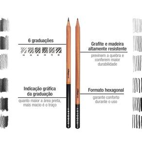 - Indicação gráfica clara da graduação, facilitando a escolha do lápis ideal em cada etapa do desenho.