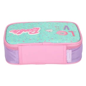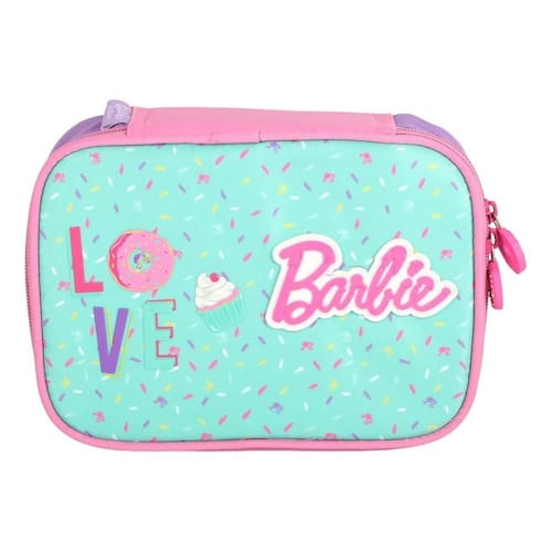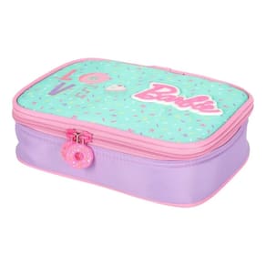 Com um design que combina tons suaves de rosa e lilás, este estojo é perfeito para meninas que adoram a icônica boneca e tudo o que ela representa. A estampa divertida traz cupcakes, donuts e a palavra "LOVE" em cores vibrantes, enquanto o nome "Barbie" em destaque adiciona um charme especial. Além de lindo, o estojo oferece amplo espaço interno, ideal para organizar canetas, lápis e outros materiais essenciais, mantendo tudo sempre à mão e bem protegido.