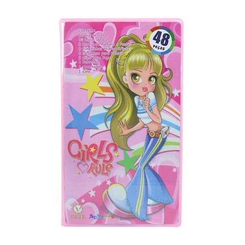 ESTOJO MALETA ESCOLAR COM 48 PEÇAS INMETRO - MT48GIRL.