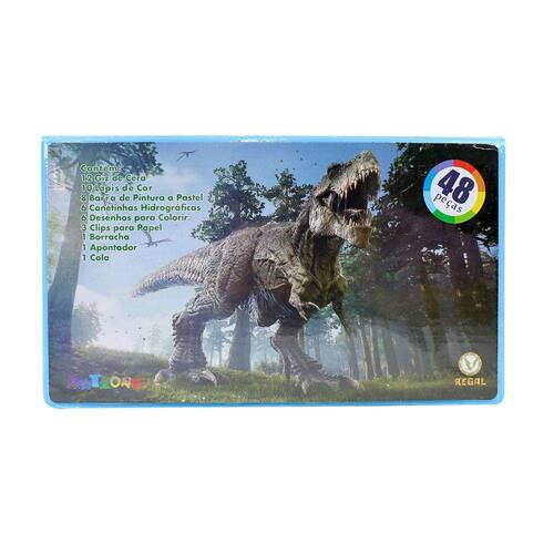 ESTOJO MALETA ESCOLAR COM 48 PEÇAS INMETRO - MT48DINO.