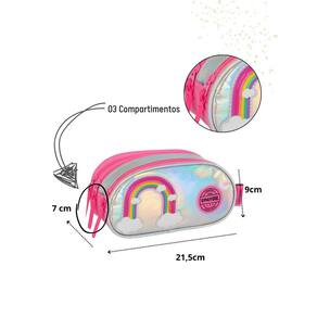 Confeccionado em Poliéster Fechamento em zíper 3 compartimentos espaçoso Design exclusivo Medidas aproximadas: Altura: 9 cm Largura: 7 cm Comprimento: 22 cm CUIDADOS: - Guarde em um local seco e arejado evitando locais úmidos. - Evite colocar excesso de peso no produto para não forçar os zíperes e costuras. - Proteja os objetos cortantes e/ou pontiagudos evitando o contato direto com o produto. - Evitar altas temperaturas. - Cores claras poderão manchar quando em contato com outros objetos ou roupas de cores pigmentadas.