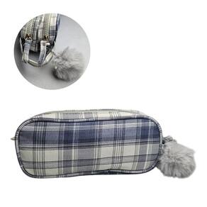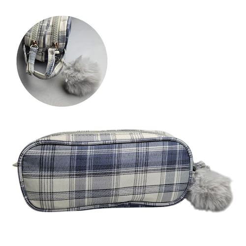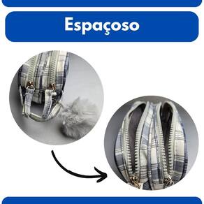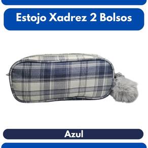 Não perca a oportunidade de ter um item funcional, versátil e cheio de estilo que vai simplificar sua rotina e adicionar um toque de charme! Adquira já o seu Estojo Necessaire Duplo Xadrez Azul com Pompom.