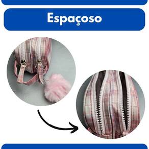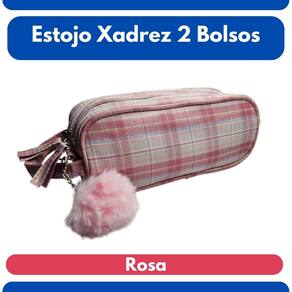Não perca a oportunidade de ter um item funcional, versátil e cheio de estilo que vai simplificar sua rotina e adicionar um toque de charme! Adquira já o seu Estojo Necessaire Duplo Xadrez Rosa com Pompom.