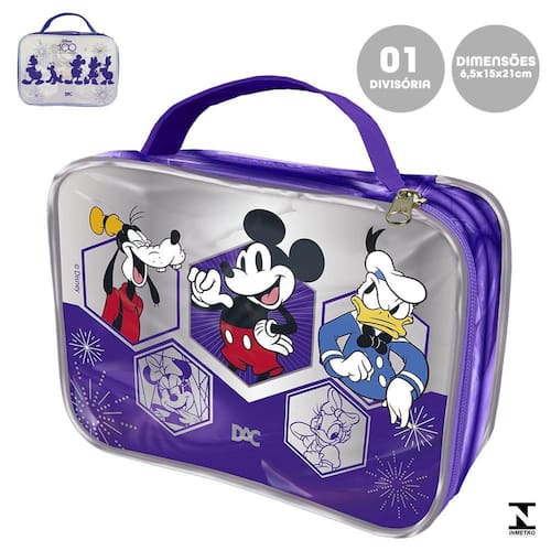 Estojo organizador com alça 1 divisória disney 100 anos 4053 dac medidas: 6,5 espessura x 15 altura x 21 comprimento cm 01 divisória com fechamento em ziper com alça composição: pvc estojo organizador com fechamento em ziper e com uma estampa super estilosa perfeito para guardar suas maquiagens ou até mesmo seus lápis inmetro 005 211/2018 a cor pode variar de acordo com cada monitor Ean: 7897237366060