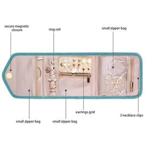 BAGSMART Estojo organizador de joias de viagem dobrável para anéis de viagem, colares, brincos, pulseiras, azul-petróleo, mini - Tamanho compacto - Dimensão: 14 cm C x 15,5 cm L x 2,5 cm A; Peso: 120 g - Toque flexível – Material: poliéster ecológico com algodão acolchoado; design padrão de costura - 5 tipos de zonas – anéis de fivela longa, painel de brincos, alça de colar, bolsa de zíper visível entre camadas e bolso longo com zíper - Armazenamento – Brincos/anéis/diamante/colares/pulseiras/broches/grampo de cabelo/relógio, evitando que eles se enrolem, mantendo suas joias bem organizadas - Funcional – Perfeitamente adequado para viagens de negócios, performances, viagens e outras atividades ao ar livre, e é um ótimo presente para amigos e mães
