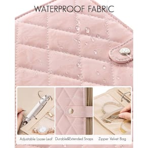 Vlando Bolsas de joias de viagem, bolsa de armazenamento de joias, 5 peças de veludo transparente com bolsos com zíper para viagem de viagem, organizador de joias para mulheres - Organizador portátil de joias de viagem: 17,3 x 4,3 x 21,8 cm, organize seus itens essenciais de viagem ordenadamente em um livro fácil de carregar em sua bolsa ou mala. Perfeito para viagens ou saídas diárias - Armazenamento de divisórias: a caixa de joias Vlando tem 5 páginas soltas com anéis de encadernação de metal (inclui 1 página para cinta grande + 2 páginas para grades médias + 3 páginas para grades pequenas), pode acomodar vários tipos de joias. Suficiente para sua viagem de 5 a 7 dias ou uso diário - Organizador de joias de viagem à prova d'água: Livro de armazenamento de joias dobrável, material macio acolchoado pode proteger as joias de serem apertadas e arranhadas. Bolsos com zíper protegem suas joias de quedas, perdas, oxidação, poeira e danos - Fichário ajustável: o organizador de joias de viagem feminino vem com anéis de metal, você pode adicionar ou remover páginas de forma flexível conforme suas necessidades. Dicas: Se você quiser colocar algumas joias grossas, sugerimos reduzir algumas páginas internas adequadamente para evitar apertar suas joias - Presente perfeito: estojo de joias requintado com bolsa de veludo, o organizador de joias ideal de cada mulher, adequado para colares, anéis, pulseiras, relógios, fotos, ingressos, recibos, cartões ou outros itens essenciais de viagem. Presentes quentes para viagem, aniversário, aniversário, dia dos namorados