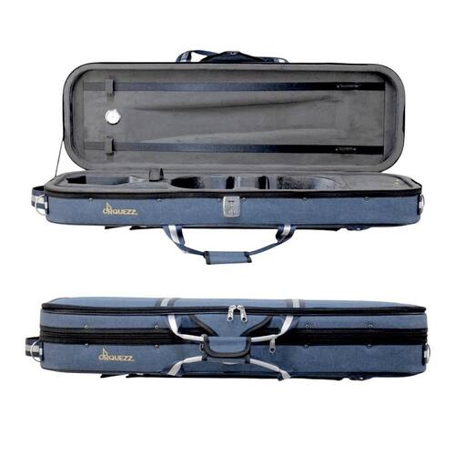 Material: isopor Tecido: oxford de alta qualidade Interno: acabamento almofadado e com veludo Marca: orquezz Modelo: retangular luxo Serve para: violino 4/4 O estojo luxo da orquezz possui um excelente acabamento e elegância, traz facilidade e leveza para o músico transportar seu instrumento, acessórios e partituras. É muito espaçoso e permite a colocação de dois arcos, da espaleira, bolso externo para leves partituras E têm ainda um compartimento interno para colocação de breu ou outros acessórios menores. Seus detalhes, desde o fecho em metal com chave até o higrômetro, contam com qualidade e beleza. Possui: Manta para proteção do instrumento Correias para carregar nas costas Informações adicionais: Cor externa: azul claro Cor interna: cinza Dimensões do estojo 4/4: Comprimento: 79cm Largura: 26cm Profundidade: 14cm Peso: 1.120 kg Bolso recomendado para o transporte de partituras e métodos de até 50 páginas. Não recomendamos o transporte de hinários, bíblias ou similares. Marca: Não Informado