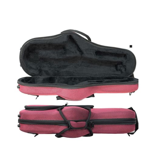 Estojo Meia lua para Saxofone Alto Eb - Mi bemol Acabamento interno veludo. Espaço para todel e bolso externo para colocação de palhetas, flanela ou outro acessórios menores. Possui o fundo extra almofadado para manter o instrumento suspenso. Revestimento externo em Oxford vinho de altíssima qualidade. Bolso externo para transportar acessórios. Alças tipo mochila removíveis. Estojo profissional de alto nível.