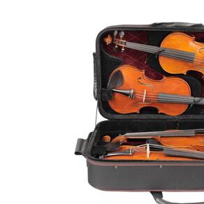 Estojo térmico feito de madeira para 4 instrumentos: violino 4/4 Leve seus instrumentos com total segurança e praticidade com o estojo térmico orquezz, projetado para acomodar quatro violinos do tamanho 4/4. Fabricado em madeira de alta qualidade, oferece máxima proteção térmica e estrutural, mantendo seus instrumentos seguros contra variações de temperatura, umidade e impactos. Seu design elegante e funcional proporciona organização impecável dos instrumentos. Acabamento interno veludo e fechadura de zíper. Fundo extra almofadado para manter os instrumentos suspensos. Revestimento externo em oxford preto de altíssima qualidade. Bolso pequeno para transportar partituras. Alças de mão e alças tipo mochila removíveis. Acompanha manta da cor do estojo para proteger os instrumentos. Estojo profissional de alto nível.