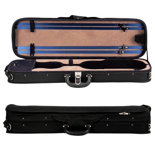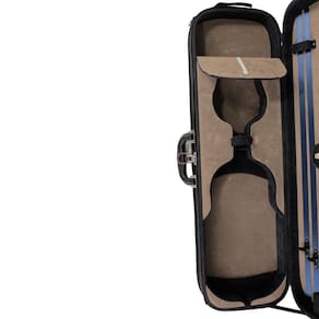 Estojo retangular feito de madeira Estojo modelo retangular para violino. Este é um dos melhores estojo que a orquezz possuí para venda. Acabamento interno veludo. Espaço para 4 arcos e fechadura em metal centralizada com chave. Espaço para espaleira. Fundo extra almofadado para manter o instrumento suspenso. Compartimento interno para acessórios. Revestimento externo em oxford preto de altíssima qualidade. Bolso externo para transportar partituras. Alças de mão e alças tipo mochila removíveis. Acompanha manta da cor do estojo para proteger o instrumento. Estojo de alto nível. Informações adicionais Procedência: Modelo: luxo Formato do estojo: retangular Quantidade de arcos: 4 arcos Revestimento externo: oxford Cor externa: preto Cor interna: caramelo e marrom Revestimento interno aveludado Tipo de fecho: fechadura em metal com chave Acessórios inclusos: alça transversal, manta de veludo, chave em metal Dimensões externas: 79 cm x 26 cm x 14 cm Peso 2 kg com acessórios Bolso recomendado para o transporte de partituras e métodos até 50 páginas. Não recomendamos o transporte de hinários, biblias ou similares.