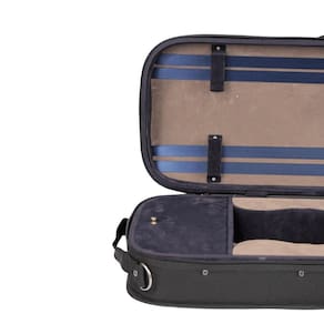 Estojo retangular feito de madeira Estojo modelo retangular para violino. Este é um dos melhores estojo que a orquezz possuí para venda. Acabamento interno veludo. Espaço para 4 arcos e fechadura em metal centralizada com chave. Espaço para espaleira. Fundo extra almofadado para manter o instrumento suspenso. Compartimento interno para acessórios. Revestimento externo em oxford preto de altíssima qualidade. Bolso externo para transportar partituras. Alças de mão e alças tipo mochila removíveis. Acompanha manta da cor do estojo para proteger o instrumento. Estojo de alto nível. Informações adicionais Procedência: Modelo: luxo Formato do estojo: retangular Quantidade de arcos: 4 arcos Revestimento externo: oxford Cor externa: preto Cor interna: caramelo e marrom Revestimento interno aveludado Tipo de fecho: fechadura em metal com chave Acessórios inclusos: alça transversal, manta de veludo, chave em metal Dimensões externas: 79 cm x 26 cm x 14 cm Peso 2 kg com acessórios Bolso recomendado para o transporte de partituras e métodos até 50 páginas. Não recomendamos o transporte de hinários, biblias ou similares. Marca: Não Informado