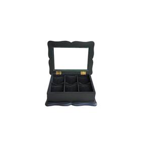 Estojo para 06 Relógios Tampa Enfeitada Laqueado de Preto