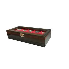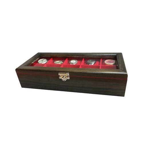 Prático e luxuoso, na linha madeira maciça encontrarmos um toque vintage, objeto decorativo onde são visíveis os veios naturais da madeira. Nossos estojos irão facilitar seu dia a dia com a organização e segurança que sua coleção precisa, além de proporcionar um ambiente mais sofisticado e elegante. Produzida com madeira natural de reflorestamento. Escolhida rigorosamente, tratada com fungicidas e anti-cupins. Envernizada externamente com verniz poliuretano industrial. Internamente as laterais e divisórias são revestidas com nylon aveludado. E as almofadas que acompanham o produto, normalmente são também em tecido aveludado. Na linha madeira maciça é possível observar os veios naturais da madeira. As dobradiças não são aparentes e possuem um limitador. A tampa possui visor com vidro transparente. Acompanha um fecho giratório de pressão em metal, ideal para colocar cadeado. Seus relógios sempre bem protegidos e acomodados confortavelmente, com toda segurança e facilidade no manuseio. Características das caixas para relógio: - Produto fabricado em madeira maciça de qualidade - Padrão Ébano - Não empena, não trinca, não racha - Revestimento interno aveludado, inclusive as divisórias - Fecho giratório de pressão em metal suporta cadeado - Tampa de vidro 2 milímetros - Acompanha almofadas para todos os casulos - Medidas aproximadas dos casulos larg x comp x alt : 7,5 x 7,5 x 7,5 cm Relógios não acompanham o estojo - Imagens meramente ilustrativas