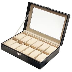 Este estojo é a solução perfeita para organizar e proteger sua coleção de relógios. Com 12 compartimentos individuais revestidos em veludo preto, seus relógios estarão seguros e livres de riscos. O design elegante e compacto se encaixa perfeitamente em qualquer ambiente.