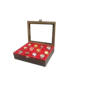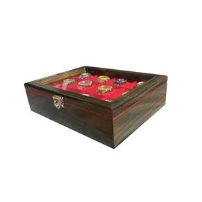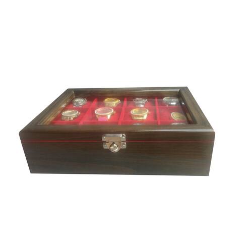 Estojo para 12 Relógios MADEIRA - Ébano Flocado de Vermelho
