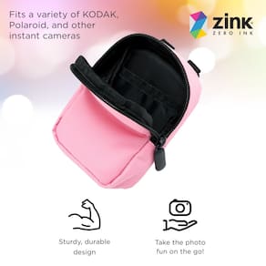 Capa de câmera Zink Soft, pequena bolsa de impressão instantânea e impressora com bolso para papel fotográfico, fecho de zíper e alça de ombro (rosa) para Kodak, Lifeprint, Polaroid, HP, Canon, Fujifilm — A capa universal para minicâmera — a bolsa resistente e durável é composta por material de tecido macio e flexível para caber em uma variedade de câmeras KODAK, Polaroid e outras câmeras de impressão instantânea; chega de mochila volumosa quando você vai Caminhando, caminhando ou explorando as férias — Bolso de papel fotográfico conveniente — o espaçoso compartimento embutido funciona como organizador e armazenamento protetor para seu Zink Zero de 2” x 3” Impressões a tinta e outros equipamentos; tire fotos, imprima instantaneamente e guarde as fotografias com segurança até chegar em casa — estilosas — O porta-câmera super moderno é perfeito para homens, mulheres, crianças e fotógrafos; disponível em preto chique, cinza elegante ou azul médio; embrulhe um presente de aniversário ou Natal que combine com a câmera KODAK — PROTEÇÃO PERFEITA — Proteja suas câmeras KODAK impressas, mini fotos, mini 2 e outras câmeras portáteis KODAK Protege as impressoras contra choques, arranhões e danos causados pela viagem; a capa é acolchoada nos pontos certos, por isso é leve, mas extremamente resistente - Alça de transporte confiável — a bolsa em miniatura vem com alça removível com clipes de mosquetão para que você possa carregar na mão ou usar tiracolo como uma bolsa ou bolsa; o design confortável inclui o emblema clássico da KODAK