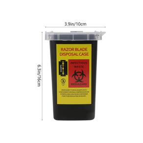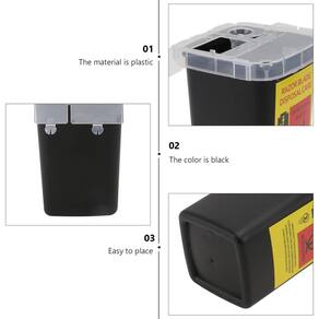 Características: Cor: Preto. Material: plástico. Tamanho: 16 x 10 x 10 cm. Conteúdo da embalagem: 1 dispensador de lâminas - A solução para armazenamento seguro e descarte dobro. - Feito de material plástico premium, é durável, resistente ao desgaste e prático. - O dispensador de lâminas economiza espaço e é leve. - Adequado para descartar objetos cortantes, incluindo contaminados com medicamentos e seus resíduos. - Caixa de armazenamento descartável para barbearia, salão de barbearia, caixa de reciclagem.