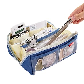 Material: jeans Tamanho: 19,5 cm* 8,5 cm* 9 cm Peso: 100 g Tecido de jeans durável Feito de tecido jeans de alta qualidade, este estojo de lápis garante durabilidade a longo prazo e resiste ao uso diário, perfeito para uso diário na escola ou no escritório. Design espaçoso de várias camadas Apresenta uma grande capacidade com vários compartimentos, incluindo uma camada transparente visível, permitindo o armazenamento organizado de canetas, lápis, réguas, borrachas e acessórios. Armazenamento Clear View O exclusivo bolso frontal transparente é ideal para exibir ou acessar rapidamente itens pequenos, tornando-o especialmente adequado para estudantes que adoram organizar crachás ou itens colecionáveis. Fecho de zíper liso Equipado com um zíper resistente que abre e fecha suavemente, evitando que os itens caiam e, ao mesmo tempo, proporcionando acesso fácil e seguro. Uso versátil Não é apenas um organizador de papelaria, mas também uma bolsa portátil para canetas adequada para escola, faculdade ou escritório, atendendo às necessidades de meninos, meninas, adolescentes e adultos.