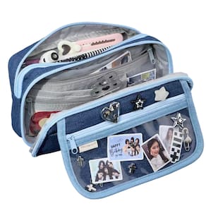 Material: jeans Tamanho: 21 cm* 11,5 cm* 7 cm Peso: 100 g Design de jeans moderno — Feito de tecido jeans durável com um elegante acabamento em azul escuro, dando à caixa de lápis uma aparência única e moderna para estudantes. Bolso transparente DIY — O bolso frontal de PVC permite a personalização com fotos, adesivos ou cartões, tornando-o um organizador de papelaria criativo e personalizado. Armazenamento em várias camadas de grande capacidade — Possui vários compartimentos e zíperes para guardar canetas, lápis, réguas, borrachas e pequenos itens essenciais de estudo. Alça portátil para conveniência — Equipada com uma alça resistente para facilitar o transporte, perfeita para uso escolar, em viagens ou no escritório. Versátil e unissex — ideal como estojo de lápis, bolsa para canetas ou organizador geral de papelaria, adequado para meninas, meninos, adolescentes e funcionários de escritório.