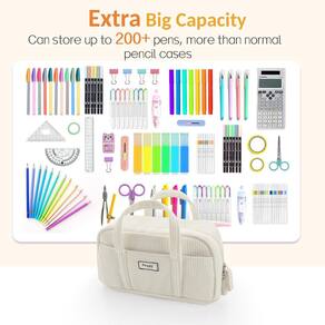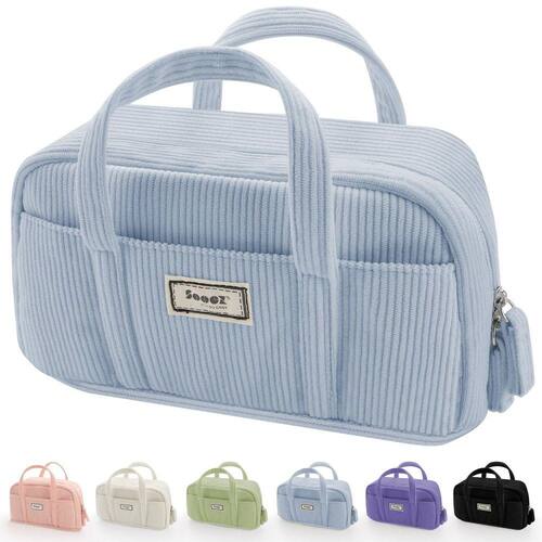 Estojo grande Sooez, bolsa de lápis extra grande com 5 compartimentos, bolsa para canetas de abertura ampla, organizador de bolsas de veludo macio com zíper, lindo material escolar estético para meninas adolescentes, azul