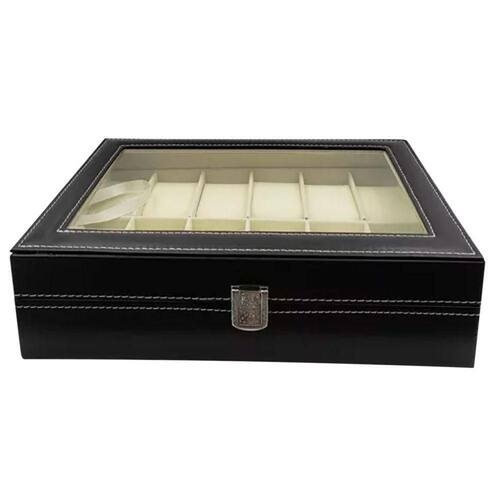 Estojo para Relógios Unissex Estojo para 12 Relógios com Tampa em Vidro Interno Aveludado Gelo Preto Negócio de Gênio