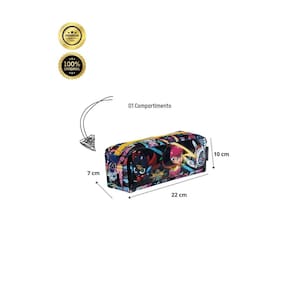 Confeccionado em Poliéster Fechamento em zíper 1 compartimentos espaçoso Design exclusivo Medidas aproximadas: Altura: 10 cm Largura: 7 cm Comprimento: 22 cm CUIDADOS: - Guarde em um local seco e arejado evitando locais úmidos. - Evite colocar excesso de peso no produto para não forçar os zíperes e costuras. - Proteja os objetos cortantes e/ou pontiagudos evitando o contato direto com o produto. - Evitar altas temperaturas. - Cores claras poderão manchar quando em contato com outros objetos ou roupas de cores pigmentadas.