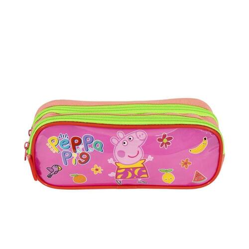 A porquinha mais famosa da TV está com uma linha completa para a escola O Estojo 2 Compartimentos Peppa M Fruits - Colorido leva uma estampa exclusiva das frutas favoritas da Peppa Pig. Com 2 compartimentos espaçosos com fechamento em zíper, esse item é perfeito para organização dos lápis, canetas e demais pertences. Produto SESTINI certificado pelo INMETRO Registro 003403/2018- OCP - 0061. Características Compartimentos:2 Compartimentos Cor:Colorido Ocasião:Escolar Tamanho:Único Material:Poliéster Altura:9 cm Largura:22 cm Profundidade:7 cm Peso:0,1 kg Capacidade Total:1 L Marca: Não Informado