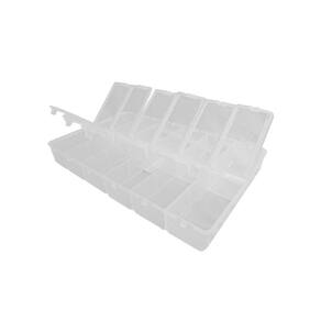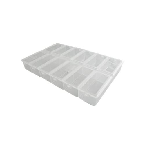 O Estojo ES-12-N é uma caixa organizadora com 12 divisões fixas e tampa com fechamento individual para cada divisão, permitindo uma organização completa conforme suas necessidades. Fabricado em polipropileno, mede 27,5 cm de comprimento, 17,5 cm de largura e 3,5 cm de altura, pesando 230g.