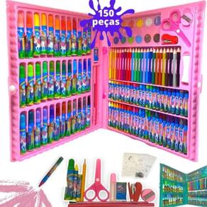 Kit completo em maleta resistente: o conjunto contém 150 peças, incluindo lápis de cor, canetinhas hidrográficas, giz de cera, tintas aquarelas, régua, borracha, apontador, tesoura e muito mais tudo isso é organizado em uma maleta resistente e fácil de transportar, para que você possa levar seus materiais de arte para onde quiser.