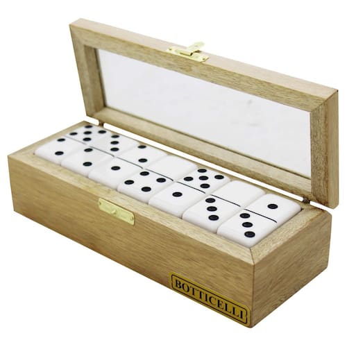 O Porta Dominó em Madeira da Botticelli é uma peça refinada, feita com madeira de Imbuia, uma madeira nobre reconhecida por sua durabilidade e aparência elegante.Com veios marcantes e tonalidade única, a Imbuia confere um charme especial a este estojo, que possui uma tampa diferenciada com vidro para valorizar o jogo de dominó.Este porta dominó em madeira tem dobradiças e fecho em latão dourado, garantindo resistência e sofisticação.Medindo 17x6,5x5cm, é ideal para armazenar o jogo de dominó com segurança e organização.O dominó, um clássico que estimula a concentração e o raciocínio lógico, encontra aqui uma forma de armazenamento à altura de sua importância.Perfeito para apreciadores de produtos de alta qualidade e excelente acabamento, este estojo é uma opção de presente encantadora para entusiastas de jogos e para quem valoriza estilo e tradição.Acompanha Jogo de Dominó produzido em Poliéster.