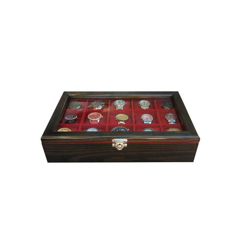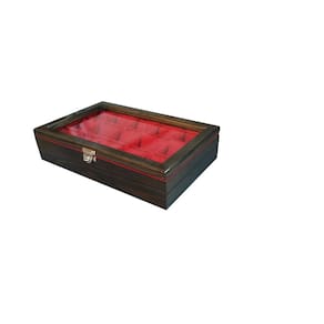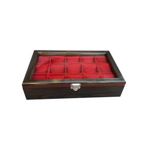 Este Estojo para 15 Relógios MADEIRA - Ébano Flocado de Vermelho é a escolha perfeita para quem busca praticidade, organização e segurança para sua coleção de relógios.