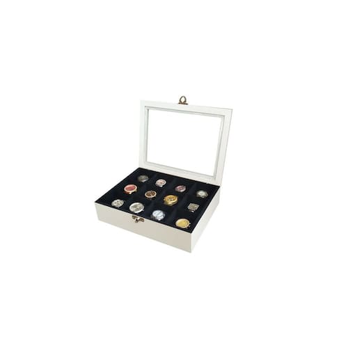 Estojo para 12 Relógios Laqueado Branco Flocado de Preto O Estojo para 12 Relógios Laqueado Branco Flocado de Preto é perfeito para quem busca praticidade, luxo e organização para sua coleção de relógios. Feito em madeira maciça de alta qualidade, esse estojo possui um toque vintage e é um objeto decorativo que irá proporcionar um ambiente sofisticado e elegante. Com medidas aproximadas de 7,5 x 7,5 x 7,5 cm, cada casulo possui revestimento interno aveludado, garantindo a proteção e cuidado necessários para seus relógios. Além disso, acompanha almofadas para todos os casulos, proporcionando um encaixe perfeito e confortável. A tampa do estojo possui um visor com vidro transparente, permitindo que você visualize sua coleção sem a necessidade de abrir o estojo. E para garantir a segurança dos seus relógios, o estojo conta com um fecho giratório em metal, ideal para colocar um cadeado. Produzido com madeira natural de reflorestamento, escolhida rigorosamente e tratada com fungicidas e anticupins, esse estojo é resistente e durável, não empena, não trinca e não racha. Além disso, as dobradiças são discretas e possuem um limitador, garantindo um manuseio fácil e seguro. Com um design elegante e sofisticado, o Estojo para 12 Relógios Laqueado Branco Flocado de Preto é perfeito para quem deseja manter seus relógios sempre bem protegidos e acomodados com toda segurança e facilidade no manuseio. Não perca tempo e adquira já o seu! Marca: Não Informado Ean: 7898668010638