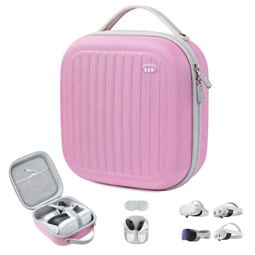 O estojo rígido compatível com o Meta Quest 3S/Quest 3/Quest 2/Vision Pro foi projetado para caber em várias versões do fone de ouvido, oferecendo uma solução de armazenamento versátil com maior durabilidade. Fácil de colocar ou retirar o fone de ouvido e o controlador em sua maleta de transporte, sem processo de montagem. É uma opção perfeita para usuários que procuram um estojo adequado não apenas para o Quest 3, mas também para modelos anteriores, como o Quest 2, ideal se você possui um dispositivo Meta ou Vision Pro ou está considerando uma atualização. Obviamente, se você está procurando um presente, também é uma boa escolha. Ajuste universal para modelos: moldado especificamente para o Quest 3, Quest 3S, Quest 2 ou Vision Pro, instalado com segurança. Proteção aprimorada: O revestimento externo rígido protege contra quedas, poeira e impactos. É feito de material à prova de choque e resistente à água para maior segurança. Amplo espaço de armazenamento: os compartimentos dentro do gabinete acomodam controladores, cabos, carregadores e outros acessórios pequenos. Design portátil com alça: projetadas para serem fáceis de transportar, essas capas incluem uma alça e são leves, apesar de serem robustas, o que as torna fáceis de transportar em qualquer lugar. Zíperes seguros e bolsos internos: os zíperes duplos permitem abertura e fechamento suaves, com malha adicional interna para organizar itens menores com segurança. Essas maletas rígidas oferecem uma solução de armazenamento protetora acessível para seu serviço — Capa perfeita projetada para Meta Quest 3S/Quest 3/Oculus Quest 2/Vision Pro: a maleta de transporte portátil foi projetada especificamente para a meta quest 3s/quest 3/oculus quest 2/vision pro, garantindo um ajuste confortável e proteja o interior do fone de ouvido VR, controladores de toque e um pequeno conjunto de acessórios contra arranhões, como cabo de carregamento autêntico, adaptador e alças ativas, com lente capa. (Observação: não serve para pulseiras Quest Elite ou qualquer outra alça de cabeça de terceiros) — Resistente e segura: feita de material eva de alta densidade, oferecendo proteção completa. Esta maleta rígida de krypthos normalmente apresenta um exterior durável e um interior macio e moldado que ajuda a evitar movimentos e impactos, mantendo o fone de ouvido seguro durante viagens, acampando ou guardando em casa. Oferece proteção de segurança à prova de chuva, poeira, resistente ao desgaste e a arranhões para meta quest 3s/quest 3/oculus quest 2/vision pro. Mantenha os dispositivos limpos e protegidos, tornando-os ideais para viagens ou armazenamento quando o fone de ouvido não estiver em uso - Grande compatibilidade: encontre uma casa para acessórios bagunçados! A maleta de transporte à prova d'água é leve e perfeitamente adequada para o oculus meta quest/vision pro, mantém tudo no lugar e oferece espaço perfeito para seu fone de ouvido VR, controladores, adaptador de alimentação, cabos de carregamento e outros acessórios pequenos. Fácil de retirar e guardar, para que você possa dizer adeus aos problemas de armazenamento — Estojo de transporte pequeno: o fone de ouvido e os controladores podem ser organizados perfeitamente em um estojo krypthos de 8,8* 8,4* 4,5 polegadas, fino o suficiente para ser facilmente transportado, cabendo na maioria das mochilas ou bagagens. Estojo de transporte com alça removível, fácil de transportar, divirta-se em realidade virtual em qualquer lugar. E é um presente atencioso para amigos e familiares - O que você ganha: a embalagem vem com uma maleta de transporte preta durável e tem uma capa de lente extra e um papelão com tiras elásticas fixas para controladores ou carregadores. Ofereça proteção dupla e absorção de choque para seu fone de ouvido e acessórios VR. E a tampa da lente protege a lente VR da luz solar direta, arranhões, poeira e compressão