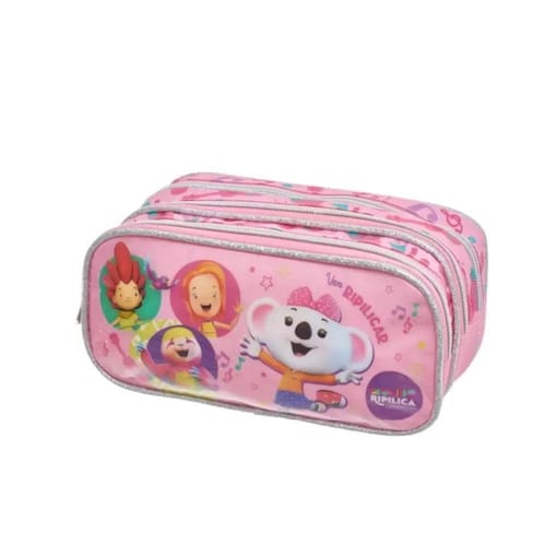 Estojo Triplo Lilica Mundo Ripilica Vem Dançar - Pacific Coleção confeccionada em poliéster com estampa corrida, acabamentos iridescentes com glíter e zíper com puxadores de metal personalizados e etiqueta de tecido bordada em lurex na lateral.Dimensões do Produto:24 x 10,5 x 11 cm - 190g