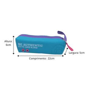 Estojo Escolar Be Authentic - Cute and Kind 22cm x 6cm x 5cm Descrição Geral: O estojo escolar Be Authentic - Cute and Kind é ideal para quem busca praticidade com um toque de estilo. Com visual moderno e frases inspiradoras, ele é perfeito para guardar lápis, canetas, borrachas e outros itens essenciais do dia a dia escolar ou . Compacto, leve e resistente, cabe facilmente na mochila. Características do Produto: Modelo: Estojo retangular com zíper Frase estampada: Be Authentic - Cute and Kind Cor predominante: Azul com detalhes em roxo e rosa Material: PVC resistente e flexível Medidas: Comprimento: 22 cm Altura: 6 cm Largura: 5 cm Fechamento: Zíper com puxador colorido Alça lateral para facilitar o transporte Benefícios: Ideal para uso escolar, universitário ou no trabalho Tamanho compacto que cabe facilmente na mochila ou bolsa Design colorido e mensagem positiva Material durável e de fácil limpeza Conteúdo da Embalagem: 1 estojo escolar Be Authentic Indicações de Uso: Perfeito para estudantes, professores e profissionais que buscam um estojo prático, bonito e funcional. Se quiser, posso adaptar a descrição para kit com outros estojos, mochilas combinando ou destacar como item promocional. Deseja isso