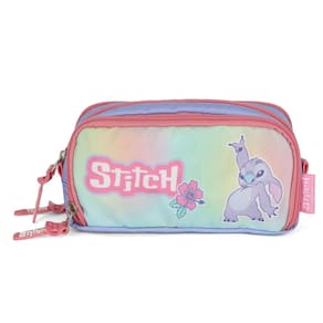Estojo Stitch Escolar Triplo Disney 3 Divisorias Cor Rosa