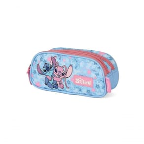 O Estojo Triplo Stitch & Angel possui dimensões de 22 x 10 x 8 cm, com capacidade aproximada de 3 litros, sendo classificado como estojo médio. Confeccionado em poliéster resistente, o modelo conta com três compartimentos espaçosos, garantindo organização prática e eficiente para lápis, canetas, borrachas e outros acessórios escolares.