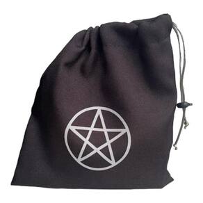 Este estojo de tecido é ideal para proteger e armazenar seu baralho de cartas. Com um design moderno e sofisticado, ele foi desenvolvido especialmente para jogos de cartas intuitivas. Feito de tecido de alta qualidade e estampado em silk screen, o estojo possui uma linda estampa de pentagrama preto e prata, oferecendo requinte ao seu jogo. Seu fechamento em cordão com regulador de cordão garante praticidade e segurança.