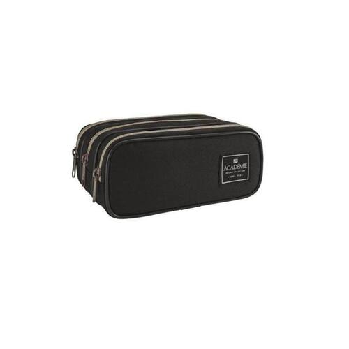 Estojo Tilibra Triplo Academie PretoA linha Académie foi desenvolvida para tornar as atividades do dia a dia mais práticas. O mix dessa marca é completo, com variedade em cores e estampas. O Estojo Triplo Grande Académie Preto é prático, espaçoso e ideal para quem possui muitos lápis, canetas, outros materiais e acessórios. Além de facilitar seu dia a dia na escola, esse estojo possui material resistente, três compartimentos que auxiliam na organização do material e fechamento em zíper.Compartimento: Três Detalhe: Etiqueta costuradaFechamento: Em zíper Formato: 200mm x 90mm Material: Poliéster Puxador: Em metal