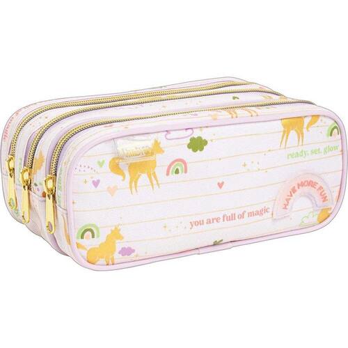 Estojo Triplo Blink Tilibra Marca: Tilibra O Estojo Triplo Grande Blink é prático, espaçoso e ideal para quem possui muitos lápis, canetas e outros materiais e acessórios. Além de facilitar seu dia a dia na escola, esse estojo possui material resistente, três compartimentos que auxiliam na organização do material e fechamento em zíper. Produto Certificado INMETRO Artigo Escolar/Segurança - Registro 014319/2024 Produto Certificado INMETRO Artigo Escolar/Segurança - Registro 014319/2024 Compartimento: três Detalhe: foil Fechamento: em zíper Formato: L 210mm x A 110mm x P 90mm : contra defeitos de fabricação Material: Poliéster Produto certificado: INMETRO Puxador: em metal