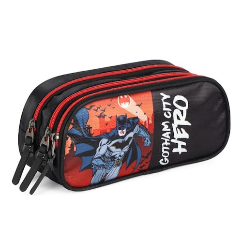 Estojo Triplo Escola Juvenil Super Heróis Batman Vermelho