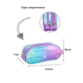 Estojo Triplo Escolar Holográfico Concha Lilás