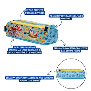 Estojo triplo escolar infantil josé comilão azul dmw Organize os materiais escolares do seu pequeno com muito charme e praticidade com o estojo triplo escolar infantil josé comilão azul dmw com três divisões espaçosas, este estojo é perfeito para canetas, lápis, notas adesivas e outros itens essenciais, mantendo tudo em ordem e com o toque divertido do josé comilão. Características: - material: 95% poliéster, 5% outras fibras - dimensões: 22,6 cm x 6 cm x 9 cm - design exclusivo com estampa do josé comilão - três divisões para organizar itens de papelaria - resistente e fácil de limpar Garanta já o estojo triplo escolar infantil josé comilão azul dmw e adicione mais praticidade ao dia a dia escolar do seu pequeno