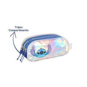 Estojo Triplo Metalizado Stitch Holográfico Infantil Escolar - Luxcel