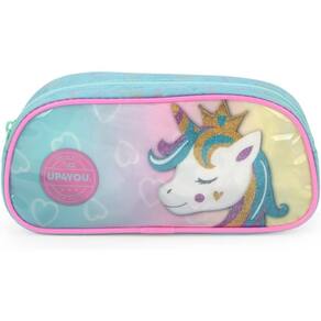 Estojo Escolar duplo Up4You, duas divisórias para melhor organização, fechamento em zíperes personalizados e logo Up4You.