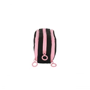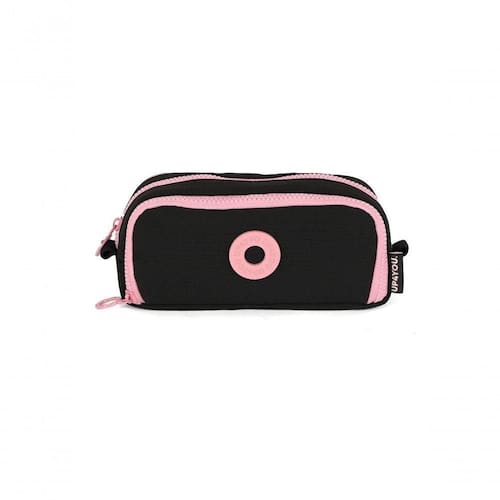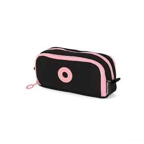 O estojo triplo é confeccionado em algodão resistente, com logo personalizado em cor de destaque e zíper exclusivo da marca. Seu design moderno e funcional oferece três compartimentos amplos, ideais para organizar canetas, lápis, borrachas e demais acessórios escolares.