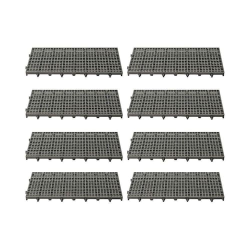 Componentes do kit:- 8 unidades de estrados 2,5x25x50 preto 1 m Estrado della plastIdeal para açougues, supermercados, padarias, confeitarias, restaurantes.Características técnicas:- medidas: 2,5 cm a x 25 cm l x 50 cm- tamanho do furo: 1,1cm x1,1cm- cor: preto- quantidade: 8- área coberta: 1 metro quadrado com as 8 unidades